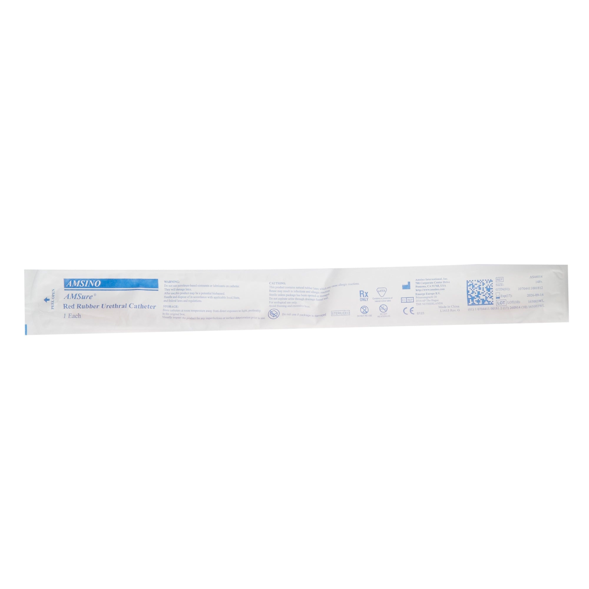 Amsino International Urethral Catheter AMSure® Straight Tip Red Rubber 14 Fr. 16 Inch #AS44014