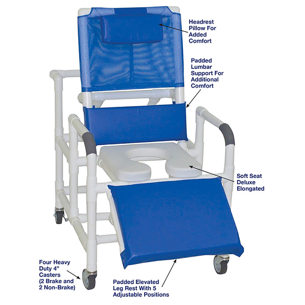 MJM International Bariatric Reclining Shower Chair With Soft Seat Deluxe Elongated #193-24-SSDE