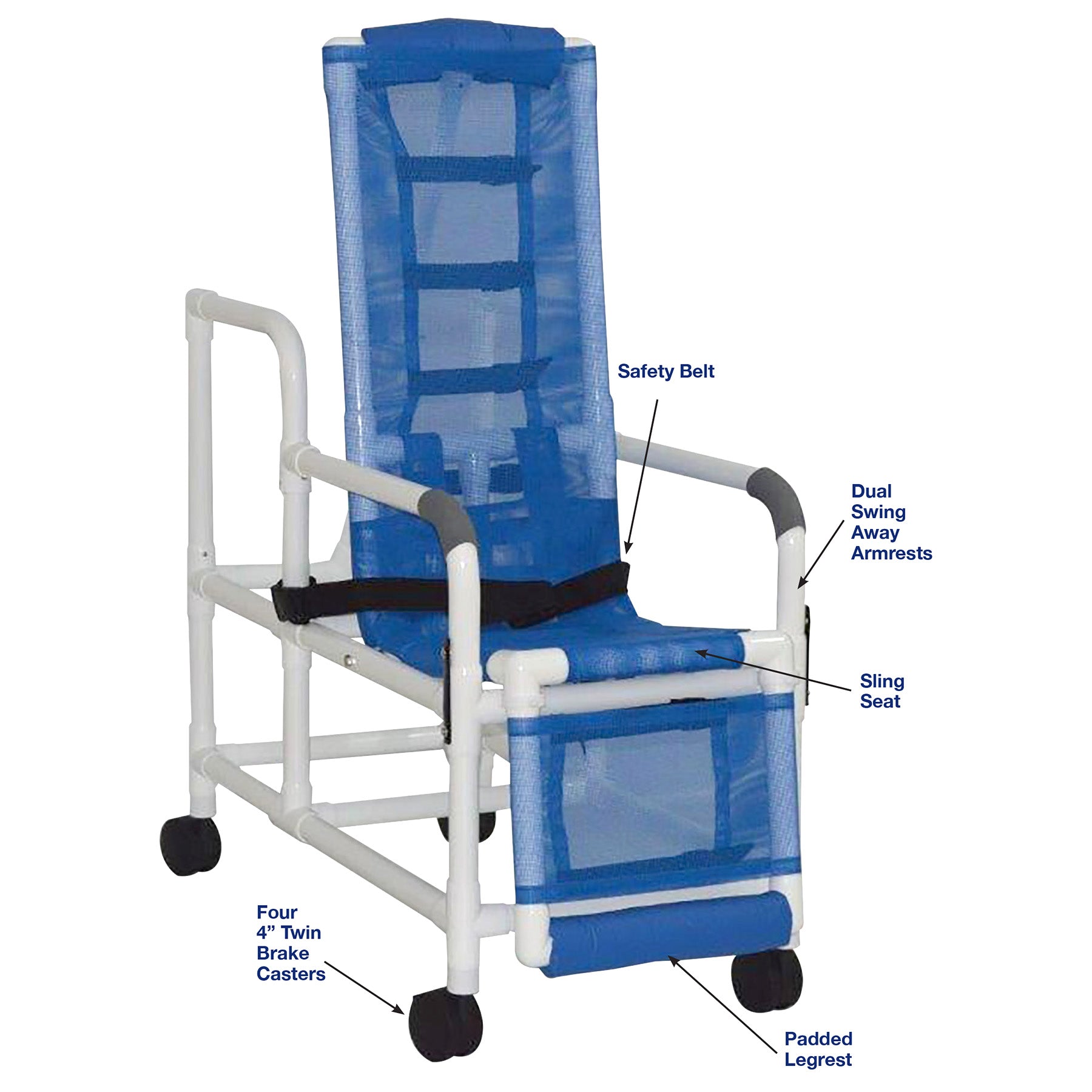 Healthcare Grade, Tilt-N- Space Shower Chair, Dual Drop Arm (Secured With Safety Vinyl Straps), Sling Seat, 7 Positions To Accommodate All Your Needs, Comes With Safety Belt, Reinforced At All Stress Related Areas, Must Be Used With Assistance.