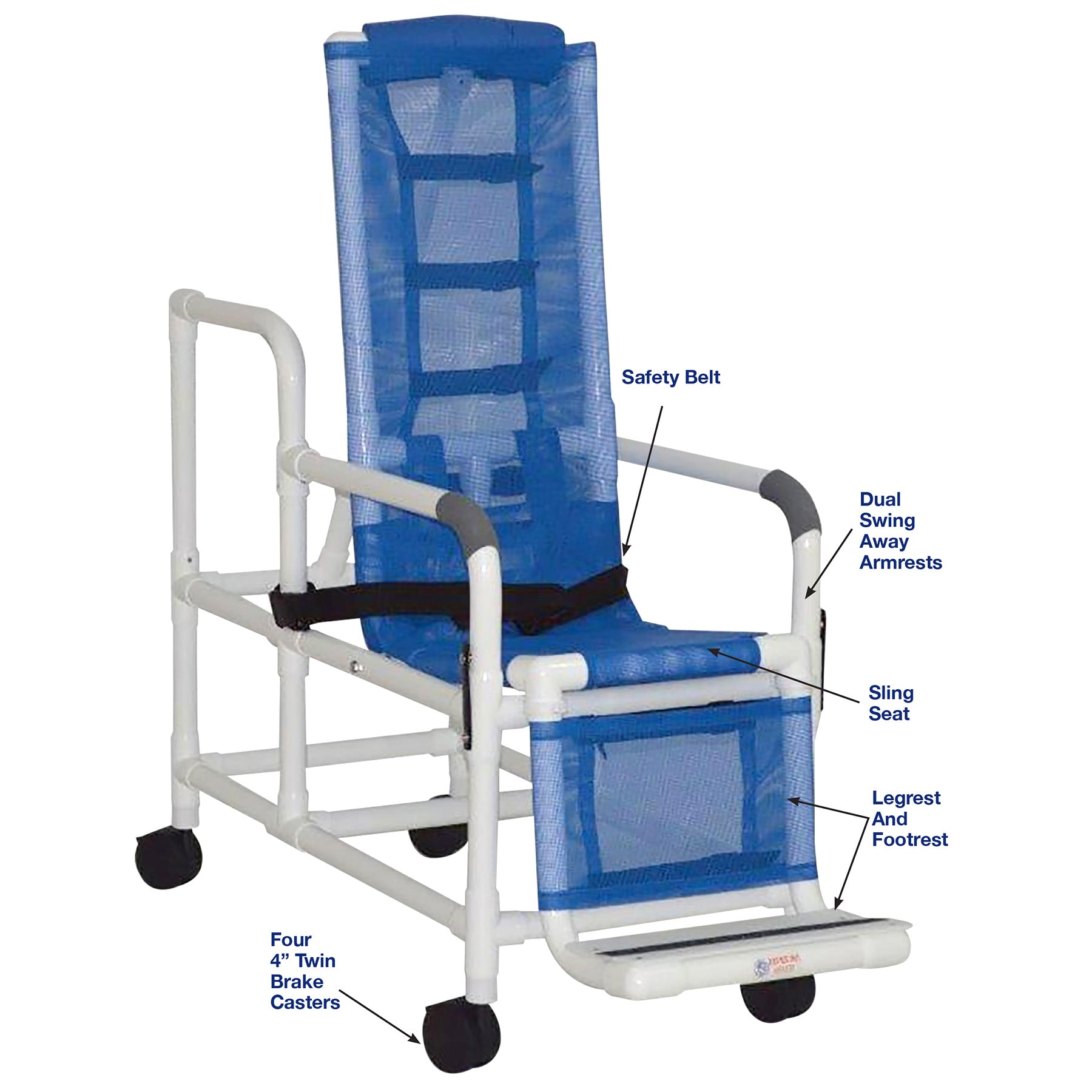 Healthcare Grade, Tilt-N- Space Shower Chair, Dual Drop Arm (Secured With Safety Vinyl Straps), Sling Seat, 7 Positions To Accommodate All Your Needs, Comes With Safety Belt, Reinforced At All Stress Related Areas, Must Be Used With Assistance.