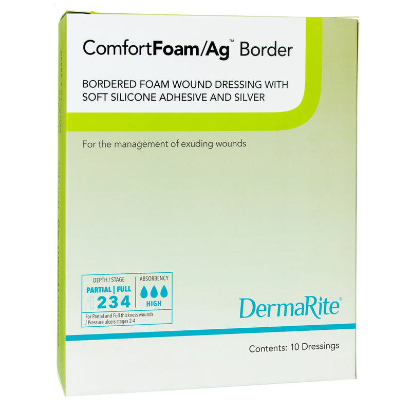 DermaRite Industries Silver Foam Dressing DermaBlue+™ Foam Transfer 4 X 5 Inch Rectangle Sterile #76040518 Sale! from $11.99 USD $16.75 USD /per View options