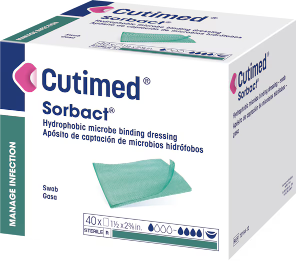 is a hydrophobic bacteria binding wound dressing, based on Sorbact® Technology. It is suitable as a liner or wound filler and allows passage of wound exudate into a secondary dressing.
