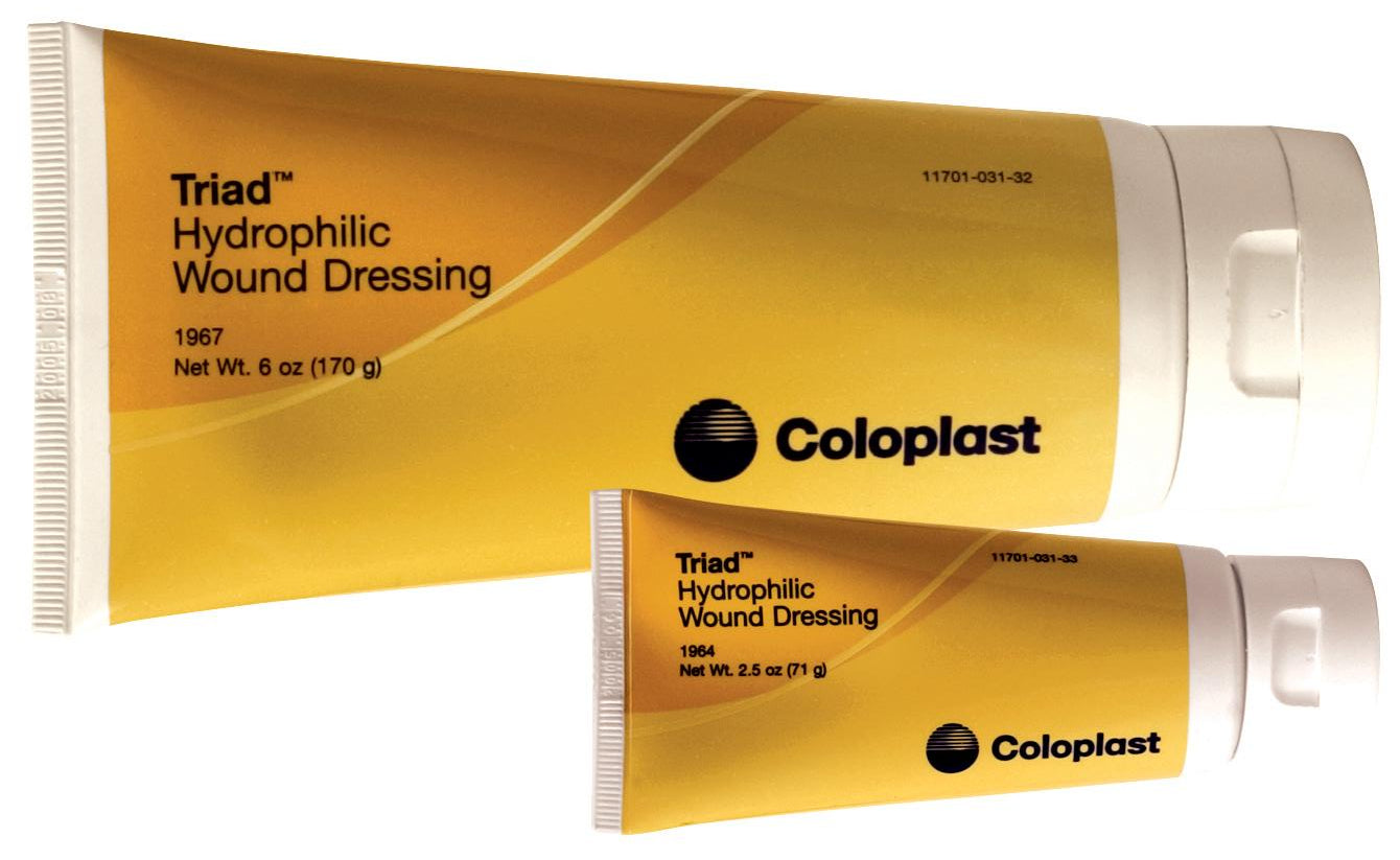 Coloplast Triad Hydrophilic Wound Dressing Paste Coloplast Sale! from $29.99 USD $45.99 USD /per UOM Each/1 Case/12 Size 2.5 oz Tube 6 oz. Tube Produc variants Each/1 / 2.5 oz Tube Each/1 / 6 oz. Tube - Sold Out Case/12 / 2.5 oz Tube Case/12 / 6 oz. Tube Qty. Add to Cart This item is a recurring or deferred purchase. By continuing, I agree to the cancellation policy and authorize you to charge my payment method at the prices, frequency and dates listed on this page until my order is fulfilled or I cancel, if permitted. Couldn't load pickup availability Refresh Tweet This item is currently on backorder but you can still purchase it now and we'll ship as soon as more become available. UOM - 1 Each / 12 Per Case Features Designed to help maintain an optimal wound healing environment and to facilitate natural autolytic debridement Ideal alternative for difficult-to-dress areas and varying wound etiologies Triad Hydrophilic for optimal absorption Zinc oxide base for skin care Sterile Product Specifications Product Type- Wound healing Size Ounces- 2.5 oz / 6 oz UNSPSC- 42311510 Latex Info- Not Made With Latex Manufacturer # COI1964 / COI1967 Manufacturer- Coloplast GTIN- 00311701066722 HCPCS Code- A6240