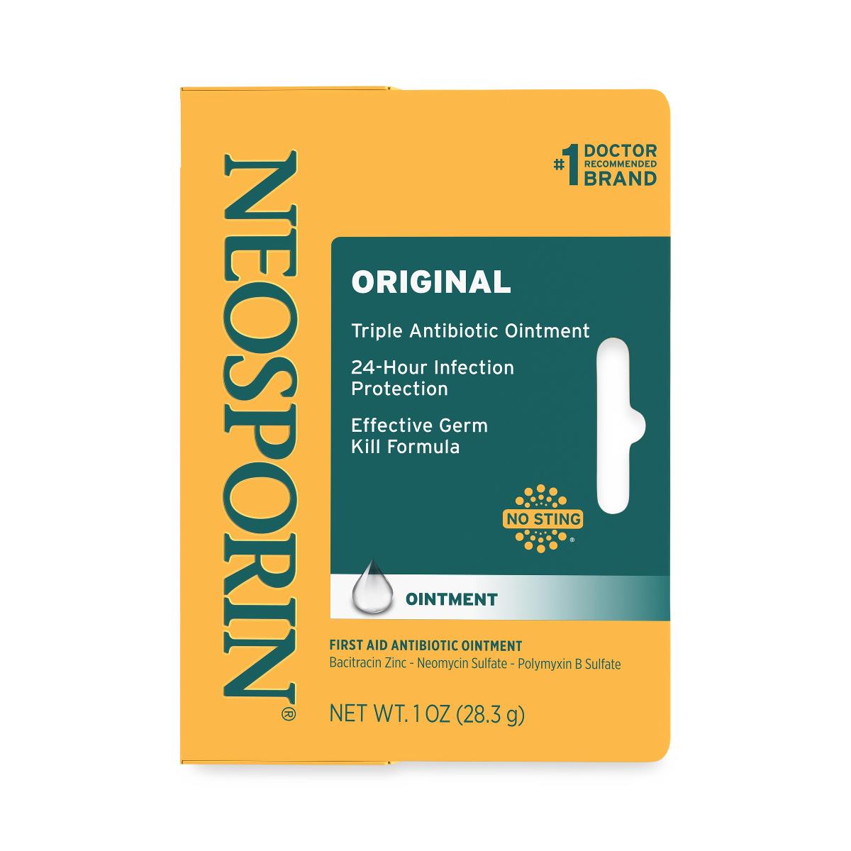 Johnson & Johnson Neosporin Ointment, Original-Strength, 24-Hour, 1 oz. Tube Johnson & Johnson Sale! from $16.49 USD $29.75 USD /per Produc variants Default Title Qty. Add to Cart This item is a recurring or deferred purchase. By continuing, I agree to the cancellation policy and authorize you to charge my payment method at the prices, frequency and dates listed on this page until my order is fulfilled or I cancel, if permitted. Couldn't load pickup availability Refresh Tweet This item is currently on backorder but you can still purchase it now and we'll ship as soon as more become available. UOM - 1 Each Features First-aid antibiotic ointment for wound care No-sting formula helps relieve itching and pain Helps minimize appearance of scars Product Specifications Otc Type- Ointment Package Type- Tube Size Ounces- 1 oz UNSPSC- 53131616 Latex Info- Not Made With Latex Manufacturer # JIP23737H Manufacturer- Johnson & Johnson FSA/HSA Eligible- Yes
