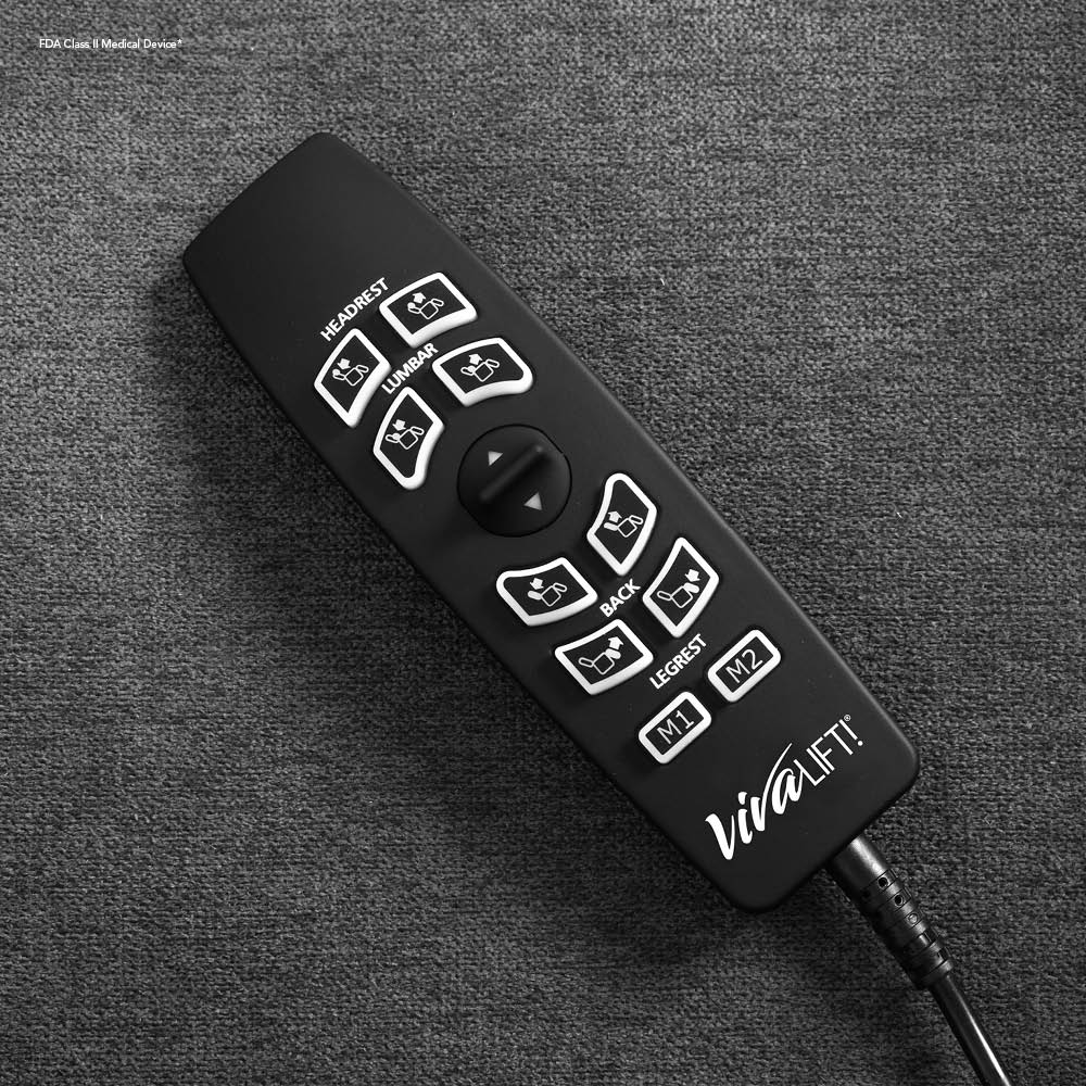 Contemporary comfort has never been more stylish! The Metro 2 Collection by VivaLift!® Power Recliners offers maximum relaxation with enhanced true-infinite positioning. Soft, dark colors with Saville fabric offers a unique and cozy appeal. The Metro 2 has been upgraded with an ergonomically designed memory toggle remote that features two programmable memory position buttons along with up/down/recline functions and custom comfort levels.
