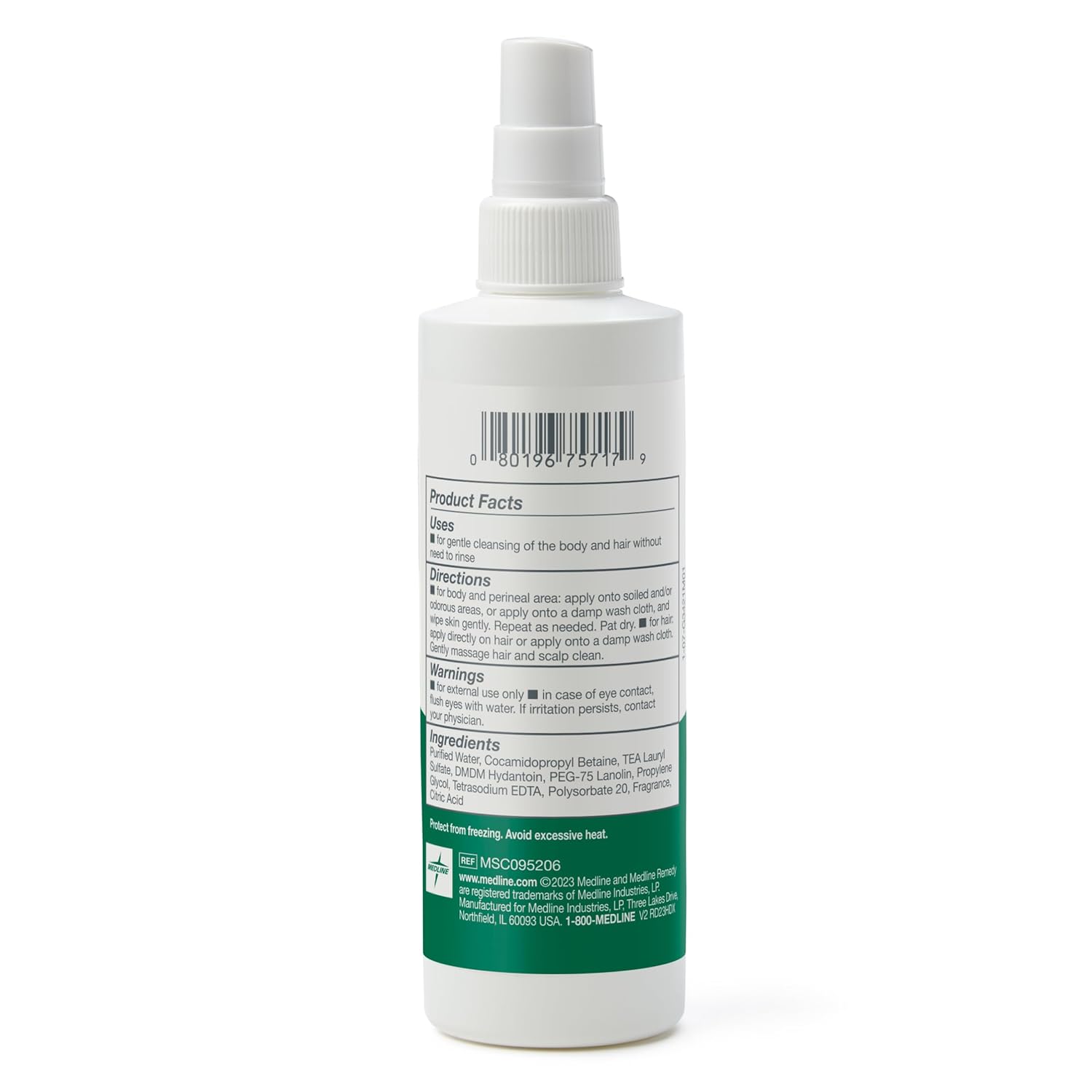 Medline Remedy Essentials No-Rinse Spray Skin Cleanser Medline Sale! from $7.99 USD $12.65 USD /per SIZE 4 oz 8 oz Produc variants 4 oz 8 oz Qty. Add to Cart This item is a recurring or deferred purchase. By continuing, I agree to the cancellation policy and authorize you to charge my payment method at the prices, frequency and dates listed on this page until my order is fulfilled or I cancel, if permitted. Couldn't load pickup availability Refresh Tweet This item is currently on backorder but you can still purchase it now and we'll ship as soon as more become available. UOM- 1 EACH Features & Benefits Use for cleansing of the entire body or as a perineal or spot cleanser Plus, for cleaning and conditioning hair Formula is CHG compatible and hypoallergenic Paraben free and sulfate free Gentle enough to be used as a no-rinse product SKU- MSC095328H, MSC095206H Item Specs AREA OF APPLICATION- All Over Body CHG COMPATIBLE SKINCARE- Yes CONTAINER TYPE- Spray Bottle ENHANCED INGREDIENTS- Aloe FRAGRANCE- Fresh Scent LATEX FREE- Yes NO RINSE- Yes PRODUCT FUNCTION- Cleaner SCENTED- Yes SIZE MILLILITERS- 118 ml, 236.5 ml SIZE OUNCES- 4 oz, 8 oz Manufacturer- MEDLINE WALLDISPENSER IPT904(pump), IPT800(bracket)