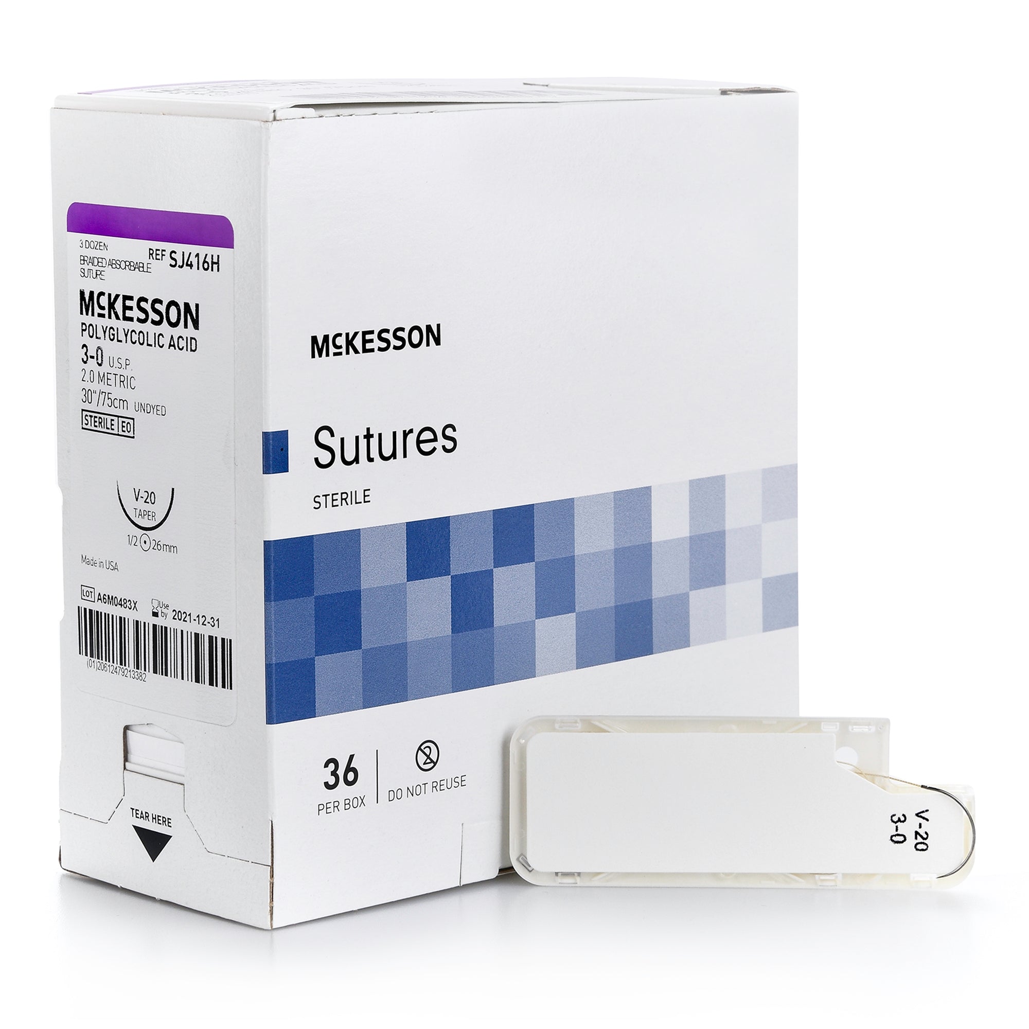 Absorbable Suture with Needle McKesson Polyglycolic Acid V-20 1/2 Circle Taper Point Needle Size 3-0 Braided #SJ416H