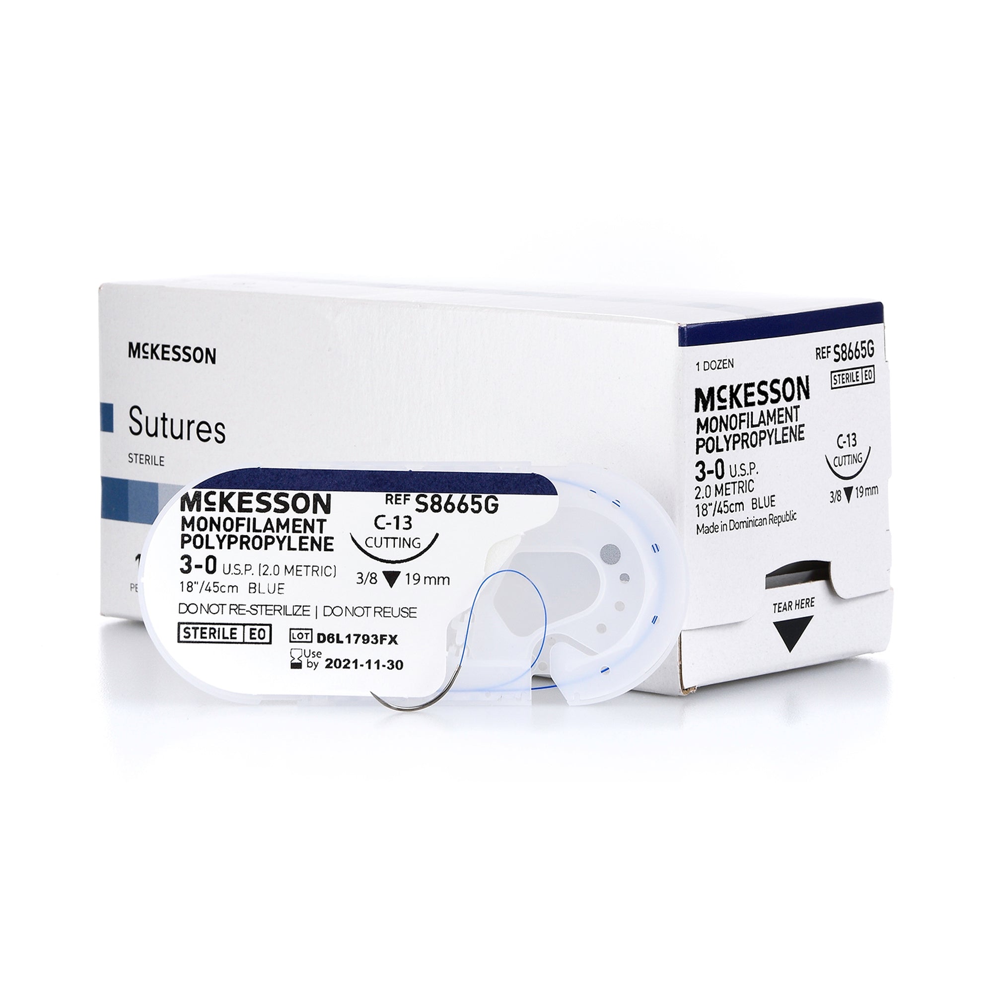 Nonabsorbable Suture with Needle McKesson Polypropylene C-13 3/8 Circle Reverse Cutting Needle Size 3-0 Monofilament #S8665G