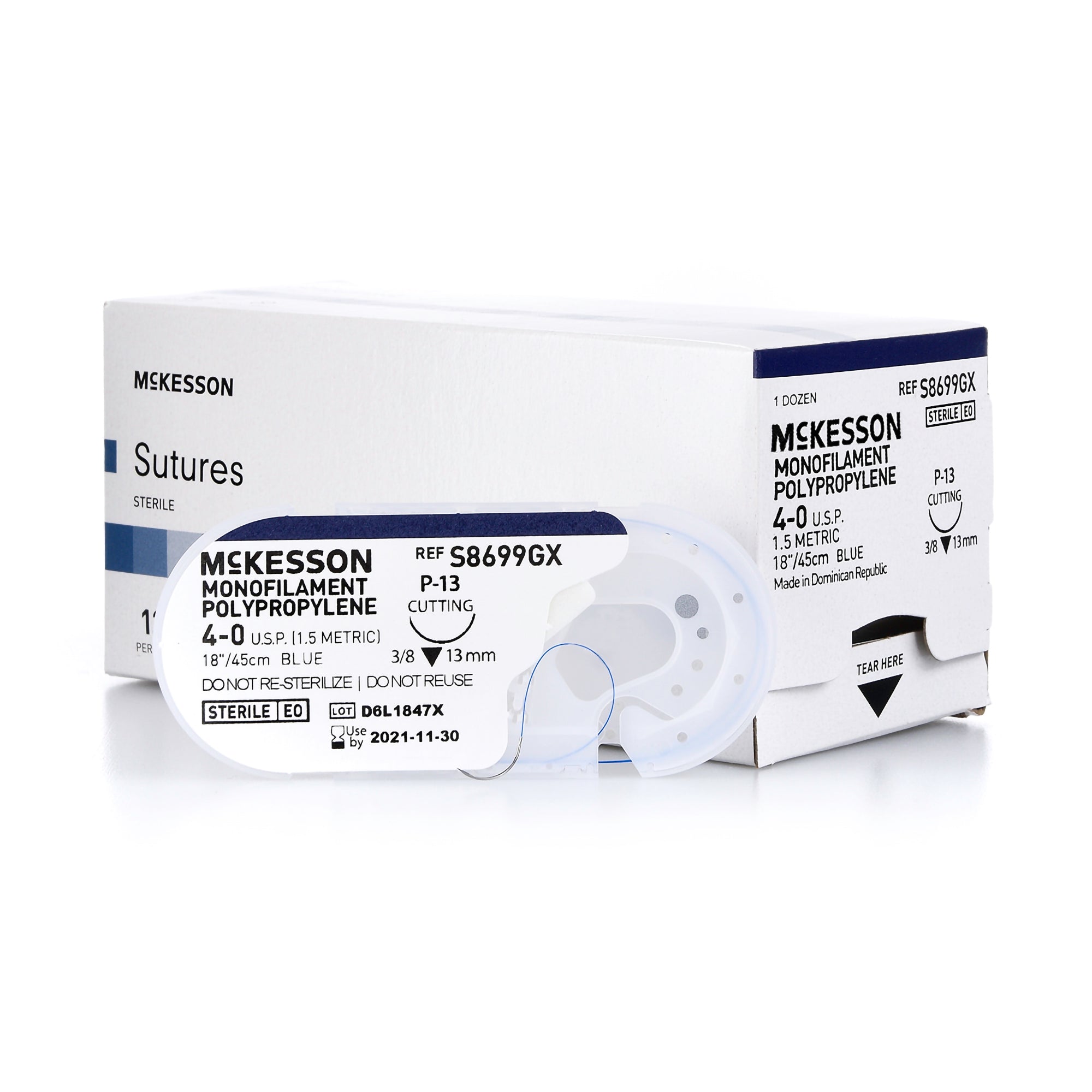 Nonabsorbable Suture with Needle McKesson Polypropylene P-13 3/8 Circle Precision Reverse Cutting Needle Size 4-0 Monofilament #S8699GX