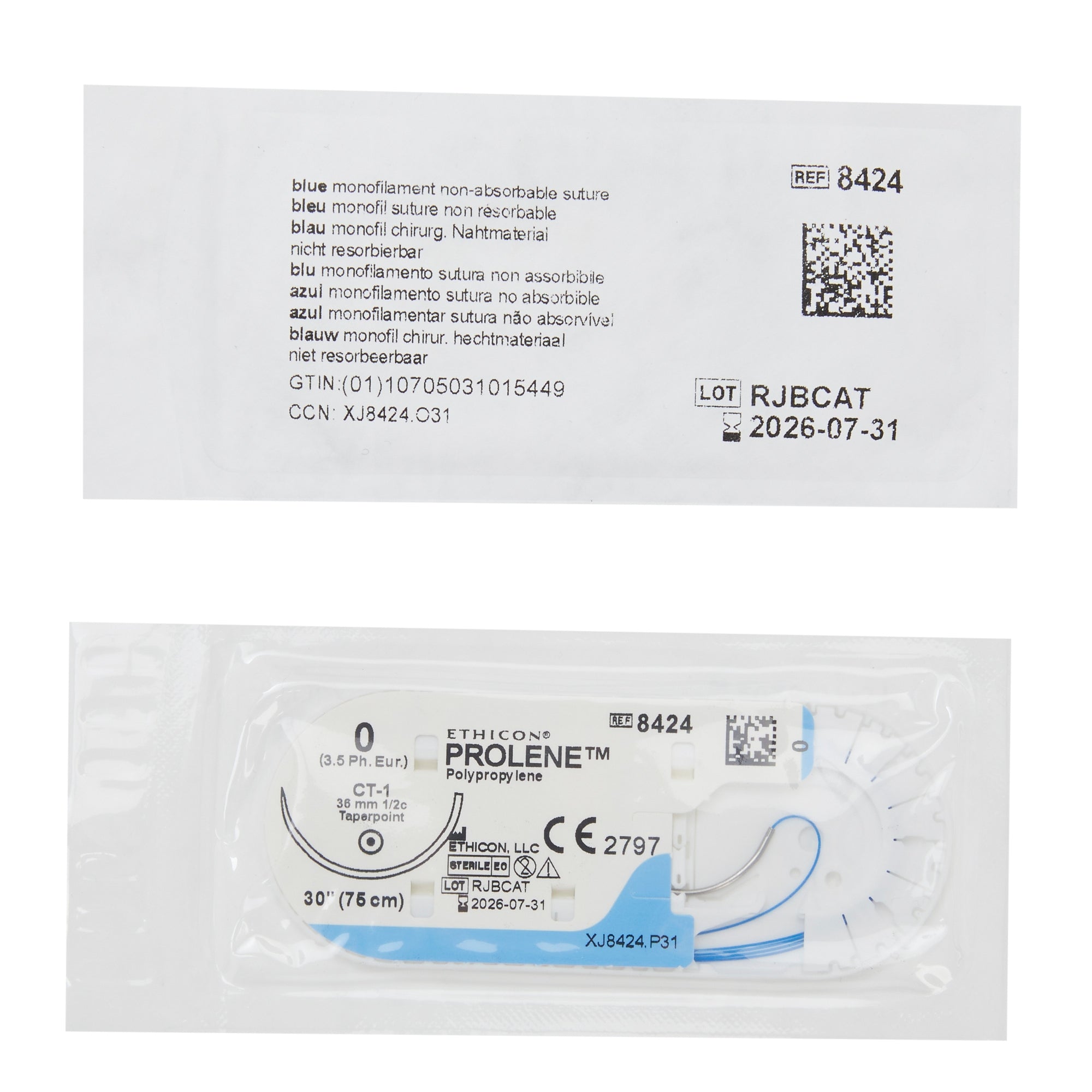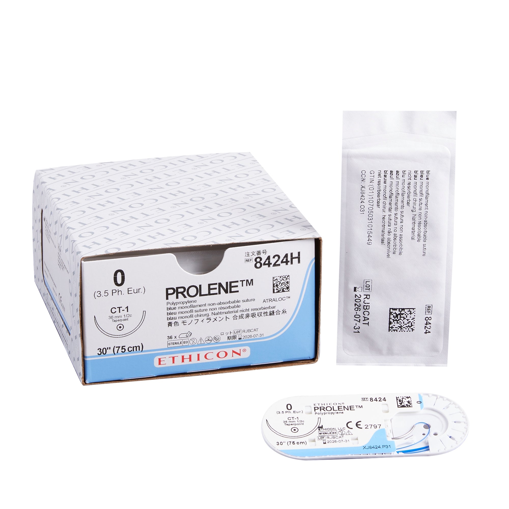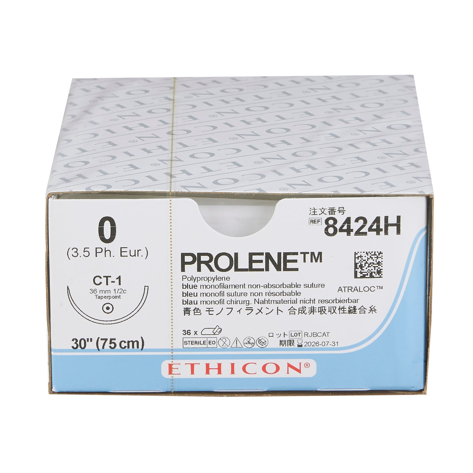 Nonabsorbable Suture with Needle Prolene™ Polypropylene CT-1 1/2 Circle Taper Point Needle Size 0 Monofilament #8424H