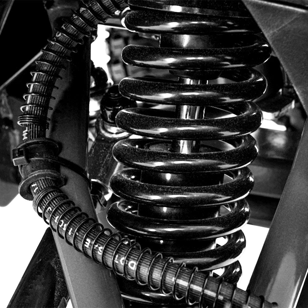 - Steering dampening system absorbs uncontrolled movements over rugged terrain designed to reduce fatigue by reducing the energy needed to control the handlebars