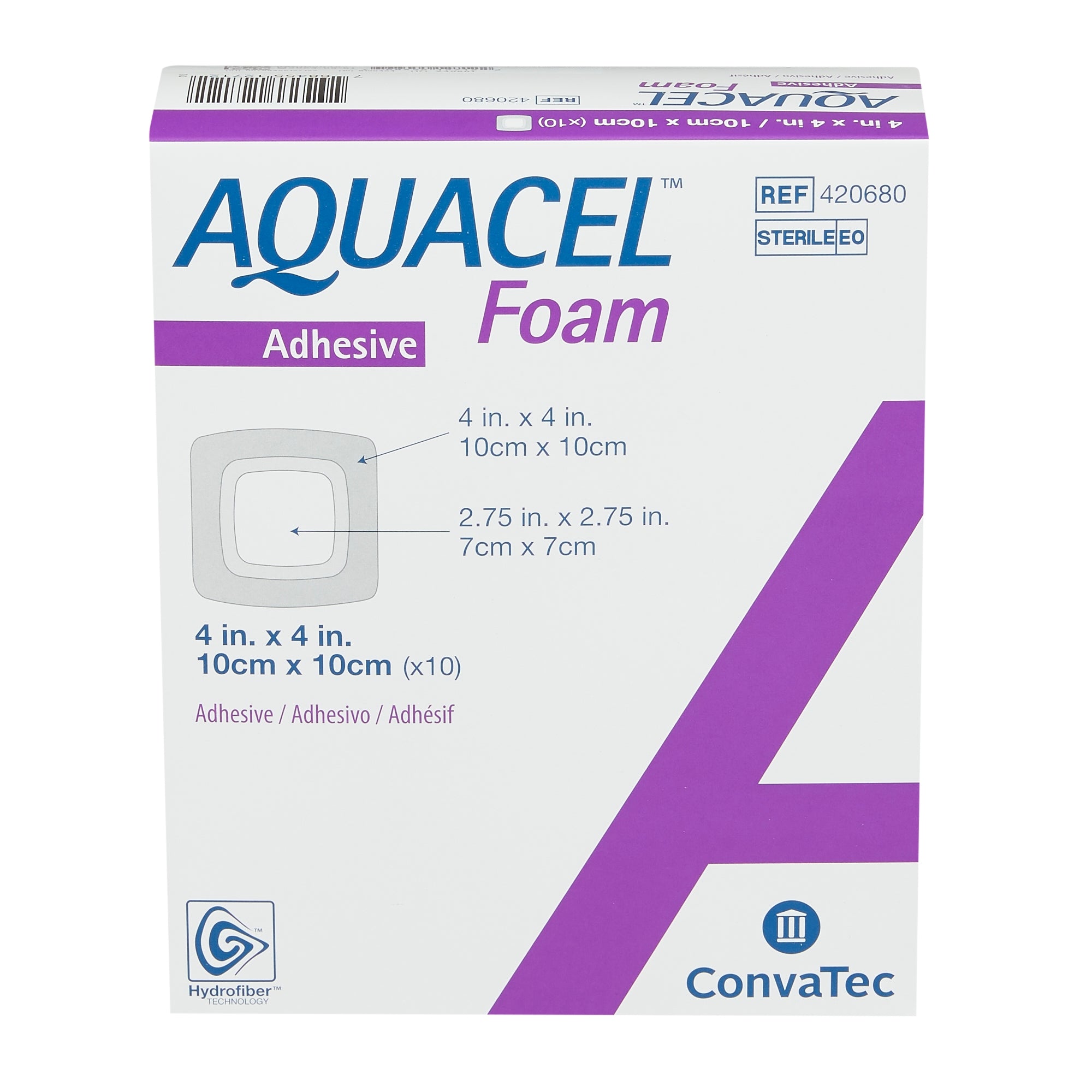 ConvaTec Foam Dressing Aquacel® 4 X 4 Inch With Border Waterproof Film Backing Silicone Adhesive Square Sterile #420680