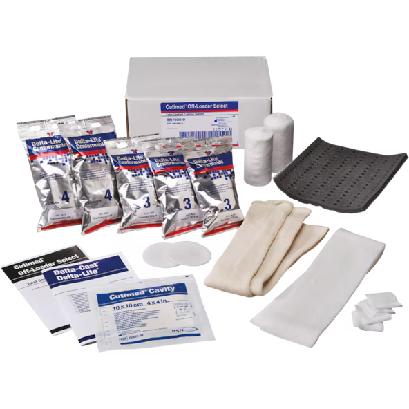 The Cutimed® Off-Loader Select kit contains components and instructions needed to make a total contact cast intended to aid in the treatment of diabetic foot ulcers and other indicated conditions.