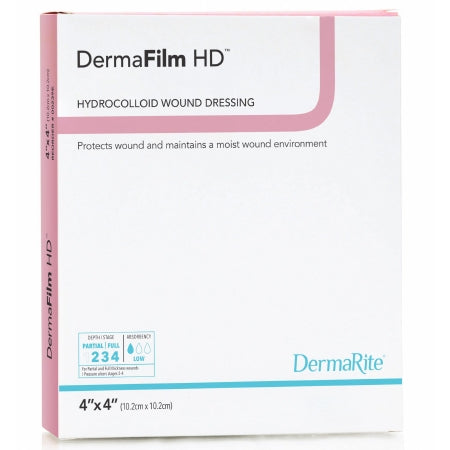 Hydrocolloid Dressing DermaFilm® 4 X 4 Inch Square Sterile Gilgal Medical Supplies Inc Sale! from $34.99 USD /per Produc variants BOX Qty. Add to Cart This item is a recurring or deferred purchase. By continuing, I agree to the cancellation policy and authorize you to charge my payment method at the prices, frequency and dates listed on this page until my order is fulfilled or I cancel, if permitted. Couldn't load pickup availability Refresh Tweet This item is currently on backorder but you can still purchase it now and we'll ship as soon as more become available. DermaFilm dressings maintain a moist wound environment that remains permeable to moisture vapor Easy to apply and come off cleanly 10 per box