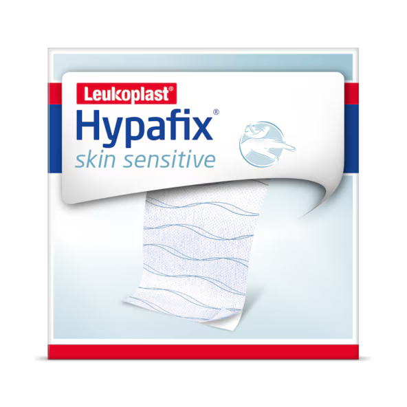 Hypafix skin sensitive is a wide area fixation for securing wound dressings and additional securement of devices. Offering low allergy potential and atraumatic removal, this fixation is ideal for highly sensitive and fragile skin.
