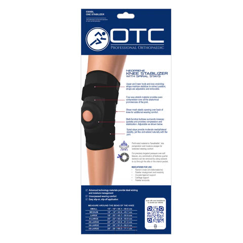 The OTC 0308 knee stabilizer retains natural body heat to help soothe aching muscles and maintain flexibility, provide firm, uniform compression to support a weakened knee, and offers moderate protection from bumps and bruises. The high-tech, perforated material “breathes”, allowing perspiration and moisture to escape for extended wearing comfort. Handcrafted construction includes invisible stitching and heat seal seam tape for added comfort and durability. Effective support and value to keep you comfortably active. Excellent for use in athletics and occupational activities.