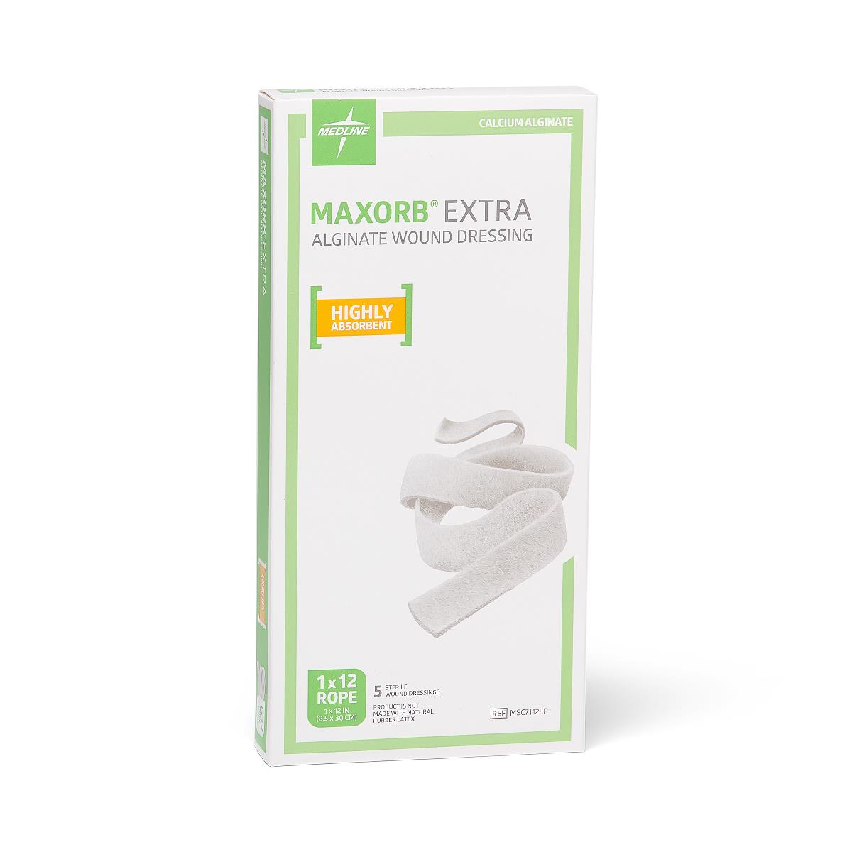 Maxorb Extra CMC / Alginate Dressings, 1" x 12" Flat Rope Medline Sale! from $23.99 USD $29.45 USD /per Uom Each/1 Box/5 Produc variants Each/1 Box/5 Qty. Add to Cart This item is a recurring or deferred purchase. By continuing, I agree to the cancellation policy and authorize you to charge my payment method at the prices, frequency and dates listed on this page until my order is fulfilled or I cancel, if permitted. Couldn't load pickup availability Refresh Tweet This item is currently on backorder but you can still purchase it now and we'll ship as soon as more become available. Features & Benefits Ideal for moderate to heavily draining partial- and full-thickness wounds Wick fluid vertically to help prevent peri-wound skin maceration Up to 7-day wear time UOM: 1 EACH/ 5 PER BOX Item Specs Brand - Maxorb Extra Ribbon Brand Description - Maxorb Extra CMC / Alginate Category - Primary Dressing Dressing Change Frequency/Use - Max: 7 Day: Check Drainage Dressing Type - Calcium Alginate Length Inches - 12 " Primary or Secondary Dressing - Primary Dress Product Type - Alginate Dressing Secondary Dressing - Recommended Sub-Category - Fiber Ribbon Width Inches - 1 " Wound Condition Type - Shallow/Deep, Mod-Hvy Drainage Manufacturer - MSC7112EPH (Each), MSC7112EPZ (Box) FSA/HSA Eligible - Yes HCPCS Code - A6196 Manufacturer - Medline
