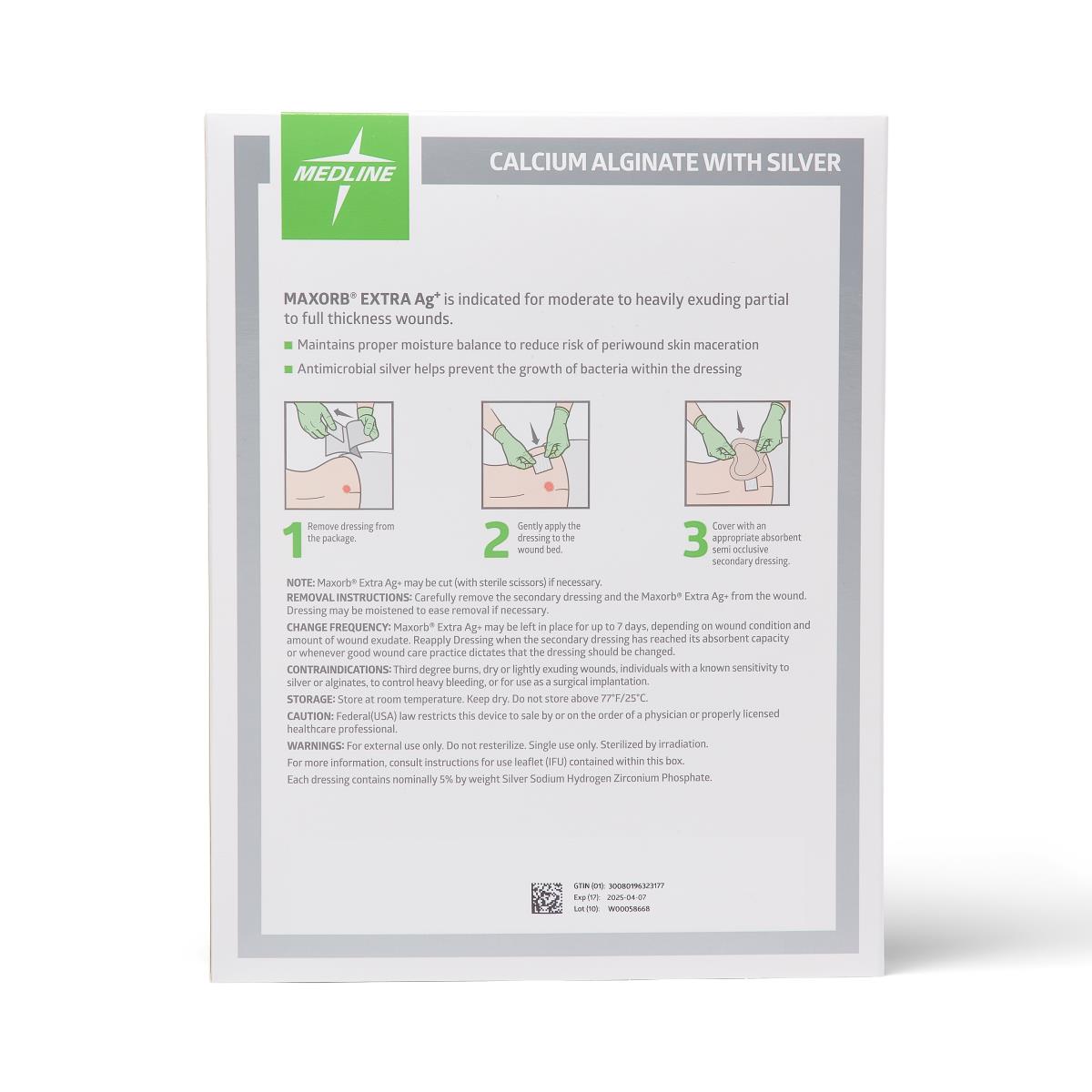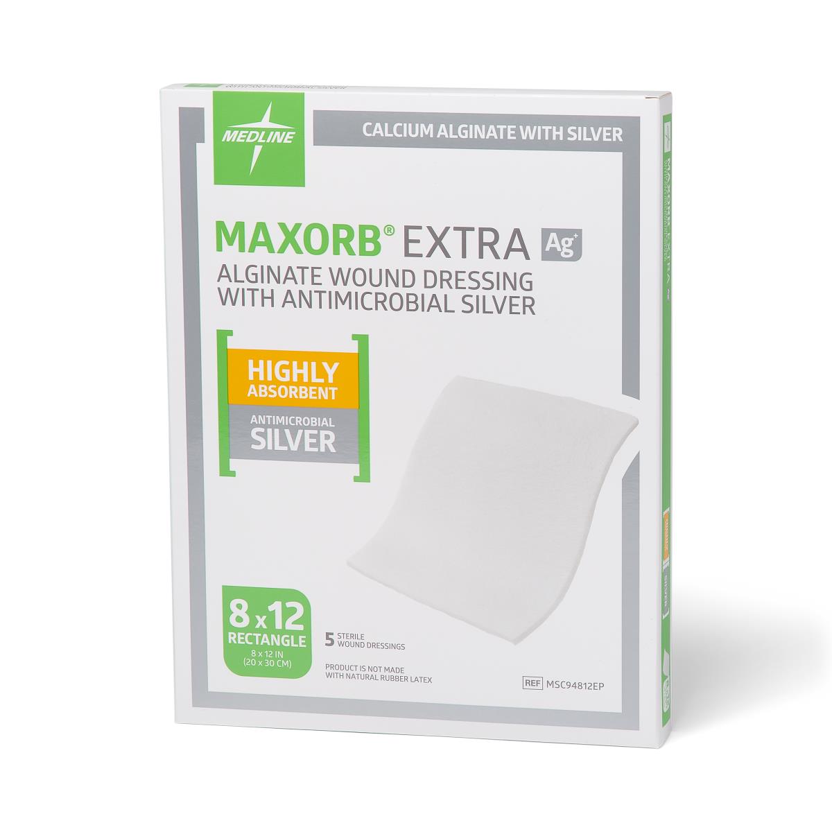 Maxorb Extra Ag+ CMC/Alginate Dressings, 8" x 12" inch Medline Sale! from $349.99 USD $468.75 USD /per Produc variants Box/5 Qty. Add to Cart This item is a recurring or deferred purchase. By continuing, I agree to the cancellation policy and authorize you to charge my payment method at the prices, frequency and dates listed on this page until my order is fulfilled or I cancel, if permitted. Couldn't load pickup availability Refresh Tweet This item is currently on backorder but you can still purchase it now and we'll ship as soon as more become available. Features & Benefits Antimicrobial silver is great for moderately to heavily draining partial- and full-thickness wounds Controlled-release ionic silver helps manage bacteria Provides sustained antimicrobial protection UOM: 1 EACH/ 5 PER BOX Item Specs Brand - Maxorb Extra Ag Brand Description - Maxorb Extra Silver Alginate Category - Primary Dressing Dressing Change Frequency/Use - Max: 21 Days: Check Drainage Dressing Type - Silver Calcium Alginate Length Inches - 12 " Primary or Secondary Dressing - Primary Dress Product Type - Silver Alginate Dressing Secondary Dressing - Recommended Sub-Category - Silver Fiber Width Inches - 8 " Wound Condition Type - Shallow/Deep, Mod-Hvy Drainage Manufacturer - MSC94812EPH (Each), MSC94812EPZ (Box) FSA/HSA Eligible - Yes HCPCS Code - A6198 Manufacturer - Medline