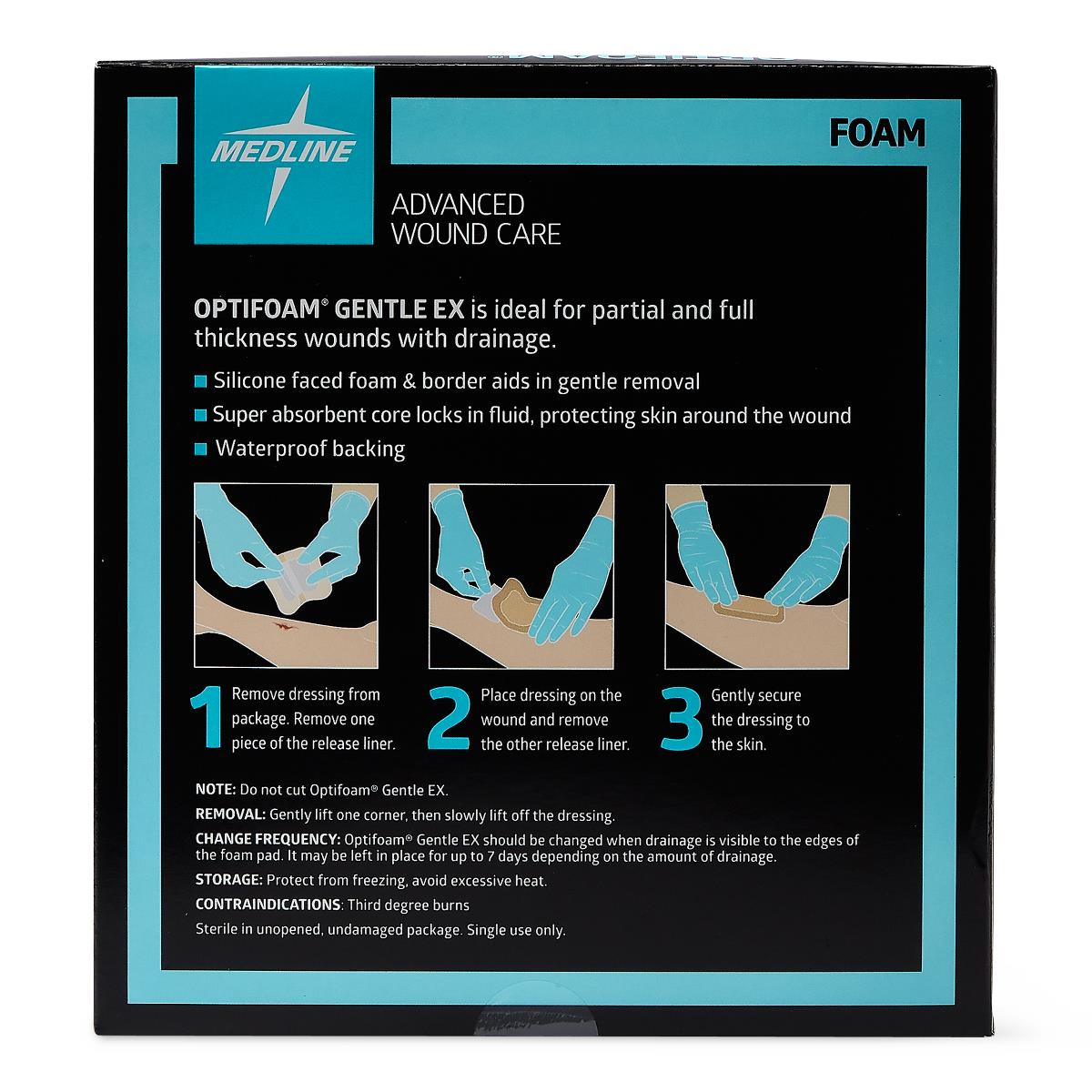 Medline Silicone Foam Dressing Optifoam® Gentle EX 5 X 5 Inch With Border Film Backing Silicone Face Square Sterile #MSCEX55EP