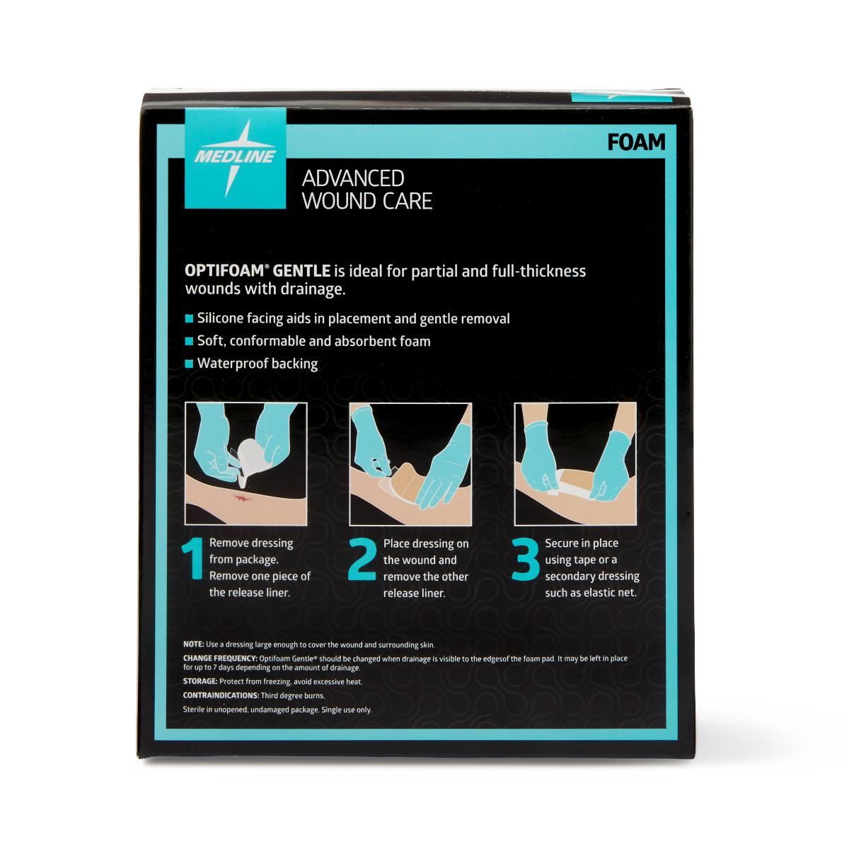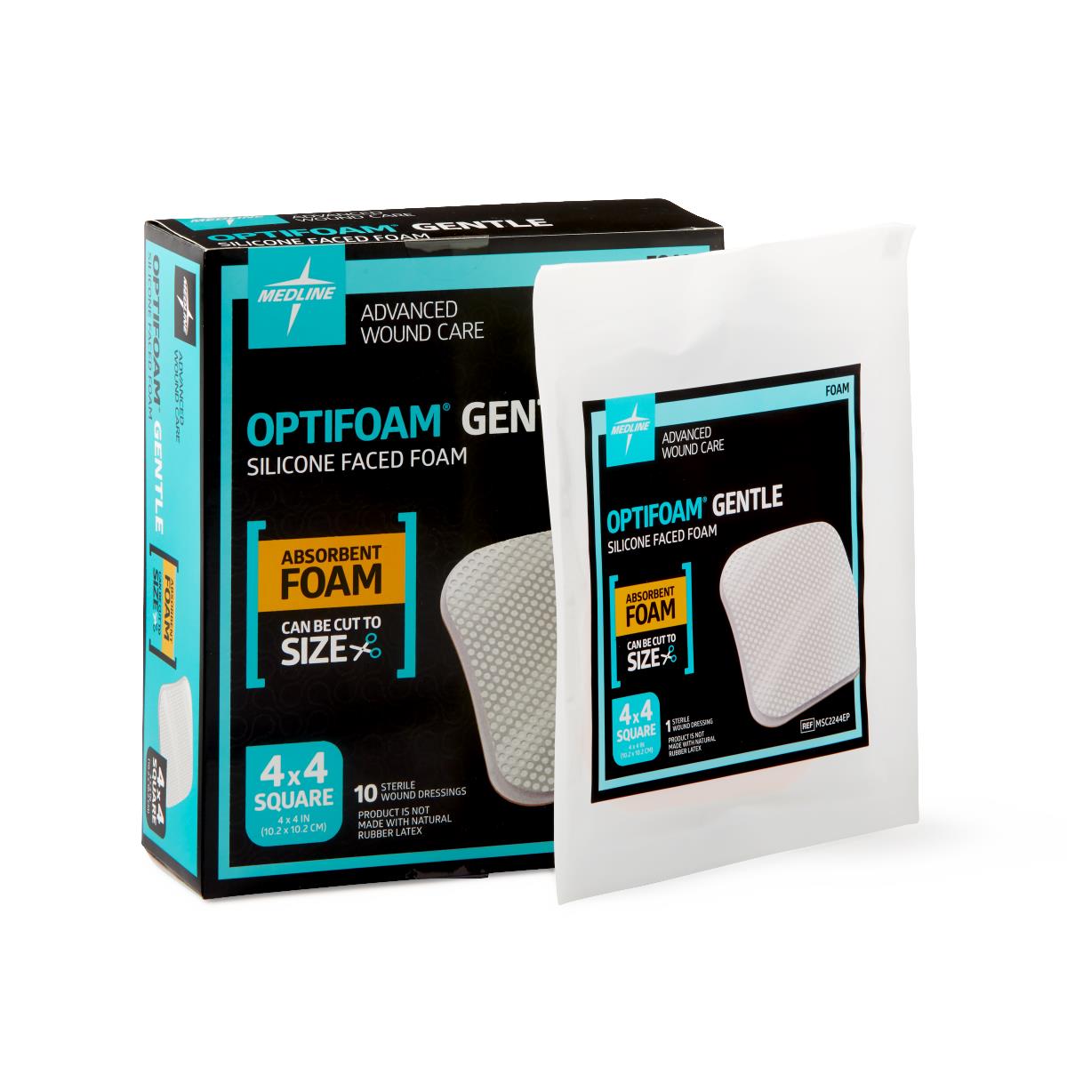 Medline Silicone Foam Dressing Optifoam Gentle 4 X 4 Inch Without Border Waterproof Backing Silicone Face Square Sterile #MSC2244EPZ