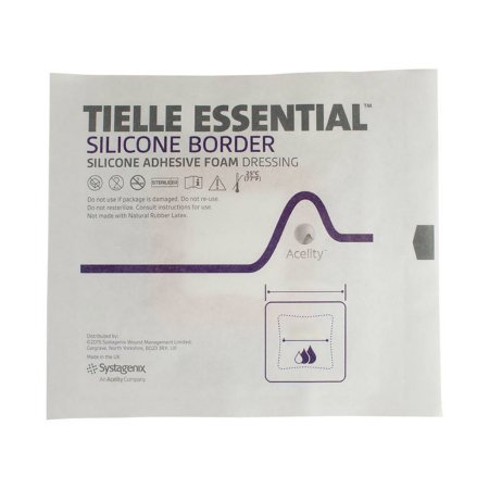 Silicone Foam Dressing TIELLE ESSENTIAL™ 4 X 4 Inch Square Silicone Adhesive with Border Sterile Gilgal Medical Supplies Inc Sale! from $1,732.99 USD /per Produc variants CASE Qty. Add to Cart This item is a recurring or deferred purchase. By continuing, I agree to the cancellation policy and authorize you to charge my payment method at the prices, frequency and dates listed on this page until my order is fulfilled or I cancel, if permitted. Couldn't load pickup availability Refresh Tweet This item is currently on backorder but you can still purchase it now and we'll ship as soon as more become available. All-in-one silicone bordered dressing Provides effective fluid management Silicone perforated layer prevents the dressing from sticking to the wound Reduces pain & trauma during dressing changes Dressing may be worn for up to 7 days 10 per carton, 10 cartons per case