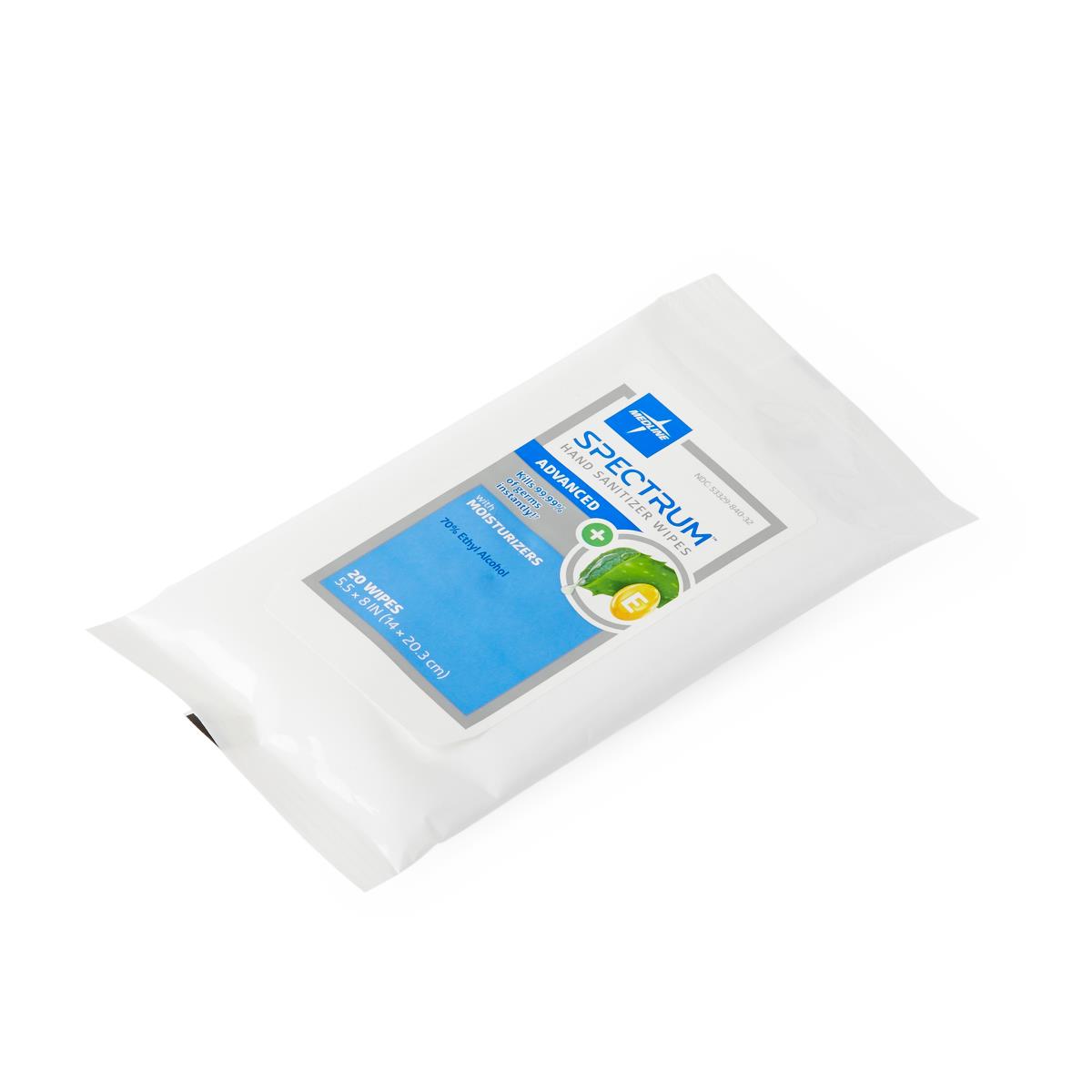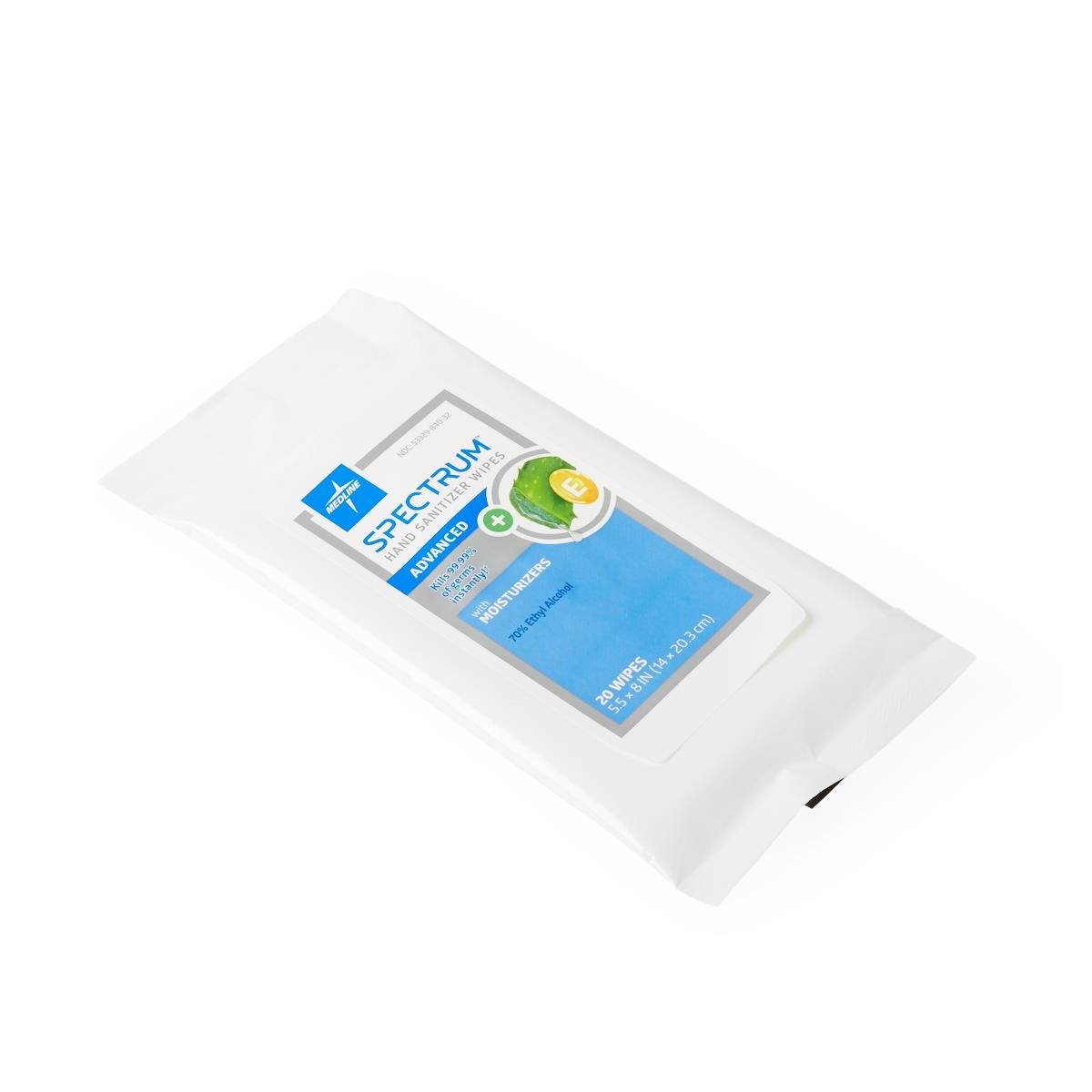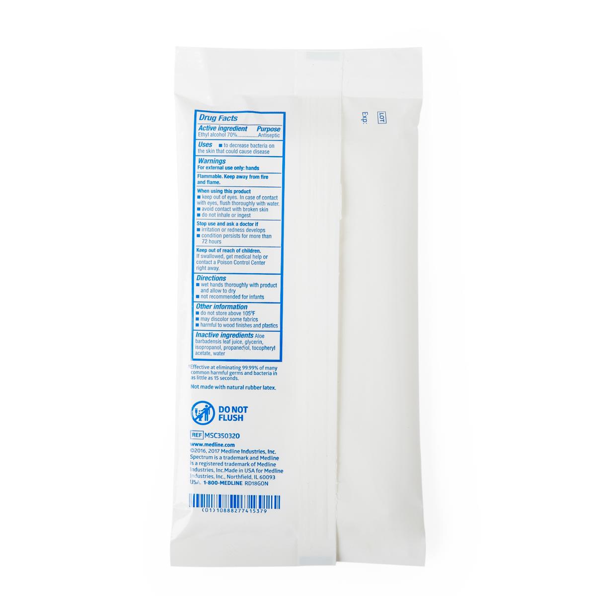 Medline Spectrum Hand Sanitizer Wipes with 70% Ethyl Alcohol Medline Sale! from $15.99 USD $23.45 USD /per Pack 20 WIPES 160 WIPES Produc variants 20 WIPES - Sold Out 160 WIPES Qty. Add to Cart This item is a recurring or deferred purchase. By continuing, I agree to the cancellation policy and authorize you to charge my payment method at the prices, frequency and dates listed on this page until my order is fulfilled or I cancel, if permitted. Couldn't load pickup availability Refresh Tweet This item is currently on backorder but you can still purchase it now and we'll ship as soon as more become available. UOM- 1 EACH Features & Benefits 70% ethyl alcohol cleans and sanitizes Formulated with Aloe and Vitamin E to soothe skin Intended for use on the hands only Unscented Disposable to help reduce risk of cross contamination SKU- HH70W160H, MSC350320H Item Specs Active Ingredient- 70% Ethyl Alcohol (V/V) Container Type- Canister / Soft Pack Fragrance- Unscented Locking- Yes / No Otc Type- Antimicrobials - Hand Sanitizer Product Composition- Wipe Product Function- To Kill Bacteria & Viruses Product Type- Hand Wipe Product Use- SANITIZER Single Use- Yes Manufacturer- MEDLINE