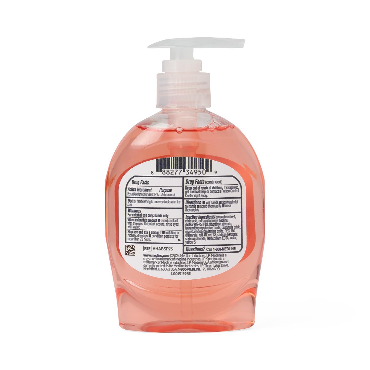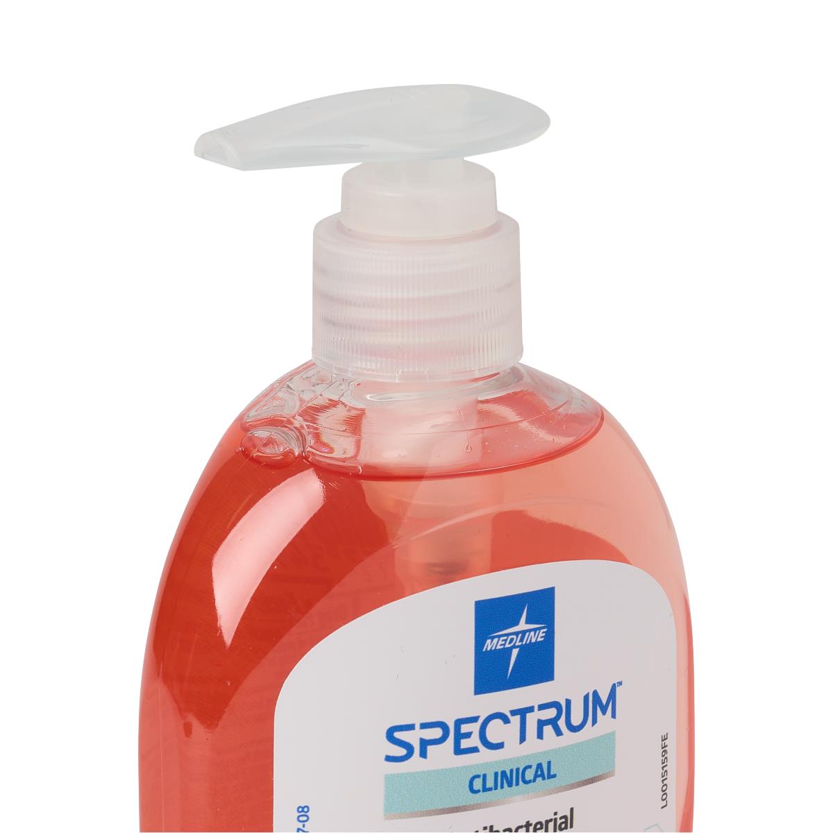 Medline Spectrum Clinical Antibacterial Liquid Hand Soap with 13% BZK Medline Sale! from $7.99 USD $12.75 USD /per SIZE 4 oz 16 oz 7.5 oz 1 Gal Produc variants 4 oz 16 oz 7.5 oz 1 Gal Qty. Add to Cart This item is a recurring or deferred purchase. By continuing, I agree to the cancellation policy and authorize you to charge my payment method at the prices, frequency and dates listed on this page until my order is fulfilled or I cancel, if permitted. Couldn't load pickup availability Refresh Tweet This item is currently on backorder but you can still purchase it now and we'll ship as soon as more become available. UOM- 1 EACH Features & Benefits Gentle antibacterial soap with 0.13% BZK helps kill many common harmful germs to protect workers from variety of bacteria Rich lathering soap with added moisturizers rinses quickly and gentle enough for everyday use pH-balanced formula safe for sensitive skin and repeated use Intended for use on human body only SKU- HHABSP04H(4 oz) HHABSP16H(16 oz) HHABSP75H(7.5 oz) HHABSPGH(1 Gal) Item Specs ANTIMICROBIAL- Yes AREA OF APPLICATION- Hands CONTAINER TYPE- Bottle, Pump Bottle FRAGRANCE- Clean Scent LATEX FREE- Yes PRODUCT COMPOSITION- Liquid PRODUCT TYPE- Tabletop Bottle PRODUCT FUNCTION- Hand Soap SIZE MILLILITERS- 118.29 ml, 473.18 ml, 221.8 ml, 3785.41 ml SIZE OUNCES- 4 oz, 16 oz, 7.5 oz, 128 oz SOAP TYPE- Antibacterial MANUFACTURER- MEDLINE